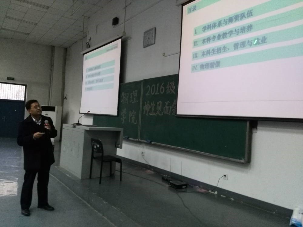 教学副院长李玉现通过内容丰富的PPT,着重介绍了物理学科的体系与特色,各个专业的教学与培养以及招生、就业等情况;随后,庞兆广、李骥和闫若颖等老师分别就光电信息科学与工程、空间科学与技术和电子信息工程等专业的培养目标、师资队伍及就业前景进行了详细介绍。见面会让同学们更加了解了色中色的发展和前景,为下一步的专业选择提供了帮助。