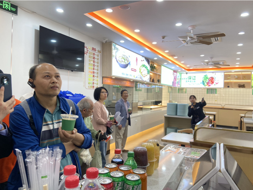 在睦邻社区长者食堂—人人食堂,食堂负责人向大家介绍了食堂的运营情况和服务内容,以及如何通过提供多样化菜品和优质服务来满足不同人群的需求。党员们对“人人食堂”的细致服务和人文关怀表示赞赏,认为这种服务模式不仅解决了长者的餐饮问题,更切实提升了附近居民的生活质量。