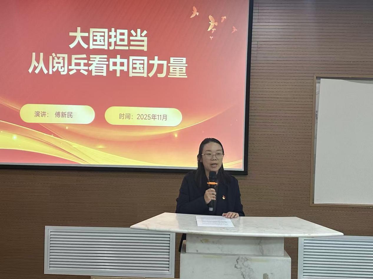 2025年11月5日,色中色 党委在田家炳二楼225报告厅举行党员主题教育活动。本次教育活动邀请上海百老德育讲师团名誉团长、中国人民解放军驻上海航天局中心军事代表室原总军事代表傅新民将军(正军级)作题为《大国担当:从阅兵看中国力量》的主题报告。学院全体师生党员、入党积极分子、学生骨干等100余人参加主题教育活动。活动由学院党委副书记王婧主持。