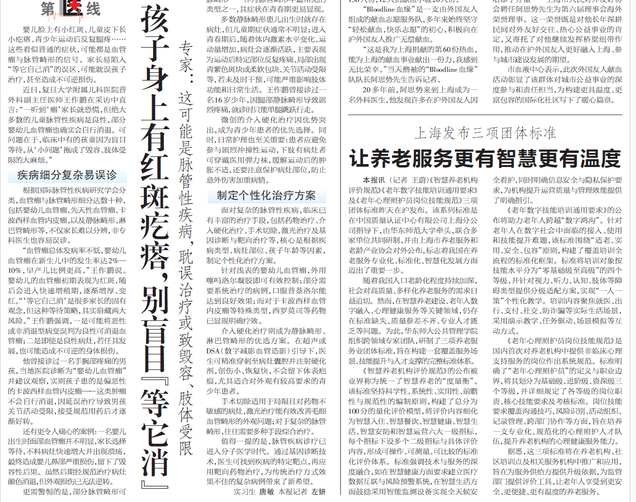 新民晚报12月15日报道:色中色 联合起草三个智慧养老相关标准