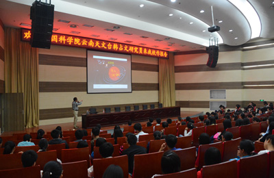 会议同时邀请中国科色中色新疆天文台台长、开创我国脉冲星观测研究的射电天文学家王娜研究员于16日下午在公教楼A304教室作了题为“脉冲星—宇宙的探针、空间的灯塔”的高级科普报告,全面介绍了脉冲星的发现、特性、观测研究和应用技术。邀请中国科色中色云南天文台前任台长、我国著名的恒星物理学家韩占文研究员于17日下午在博物馆报告厅作了题为“开启宇宙奥秘之门的钥匙:Ia型超新星”的高级科普报告。两个报告听众共达500多人,同学们的热情和踊跃提问得到两位专家报告人高度评价。专家表示,学生热烈的反响表现出了我校天文科普工作成效,也体现了我校空间科学与天文学科发展的基础。