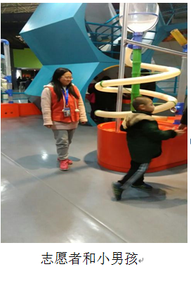 此次活动值得一提的是上午九点多,一对互相搀扶着的老夫妻带着活泼的小孙子来到了科技馆。志愿者们对这一行人投入了很大的关注,最后商量决定每人在各自所负责的区域内尽可能的帮助他们,为他们讲解,让他们度过一个愉快的周六。于是,上午的科技馆便出现了这样的一幕:不同的志愿者们,带着小男孩体验地震的摇晃,海啸的惊险,从半坍塌的房子内逃生,走镜子迷宫,体验眩晕,模拟开车,学习交通常识,感受物理实验、化学变化等的神奇之处,认识吸烟给自身带来的巨大危害;给爷爷奶奶讲解绳子的不同打结方法和一些仪器的使用方法,向他们介绍海底的神奇有趣,星空的神秘……临别时,祖孙三人笑着同大家挥手告别,大家也以笑相送。