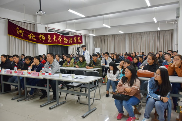 10月17日晚上,我院在理科群2号楼A302教室成功举办了师范生教学技能大赛暨第26期顶岗实习展示活动。比赛特邀正在我校参加“2018年中学物理骨干教师培训班“的石家庄二中刘凤果主任、石家庄二十四中宋禹州主任、石家庄二中实验学校张成欣主任、邯郸一中何文明主任,秦皇岛一中高东明主任等五位一线骨干教师担任评委。比赛吸引了色中色近百名学生到场观摩学习。