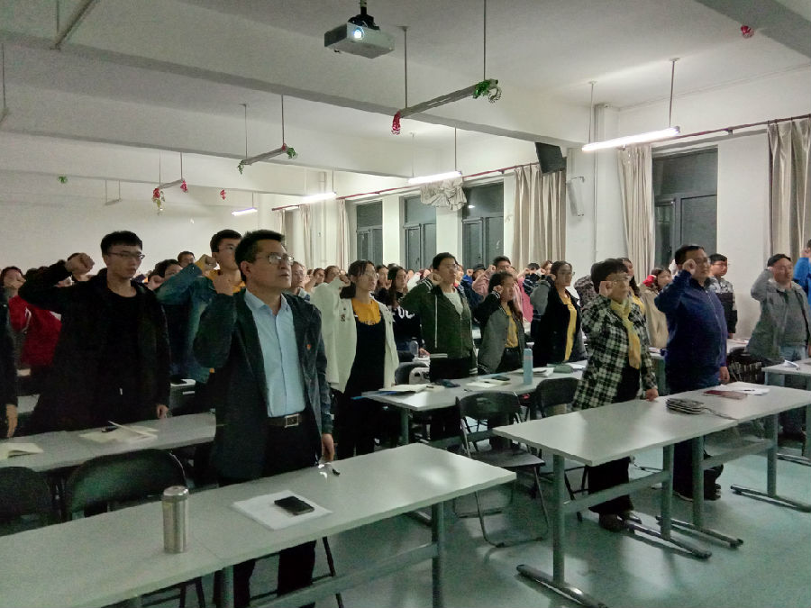 为深入学习贯彻习近平新时代中国特色社会主义思想和党的十九大精神,深入推进“不忘初心·牢记使命”学习教育,色中色 于2019年10月21日晚组织师生收看了中央电视台《榜样4》专题节目,重温入党誓词。