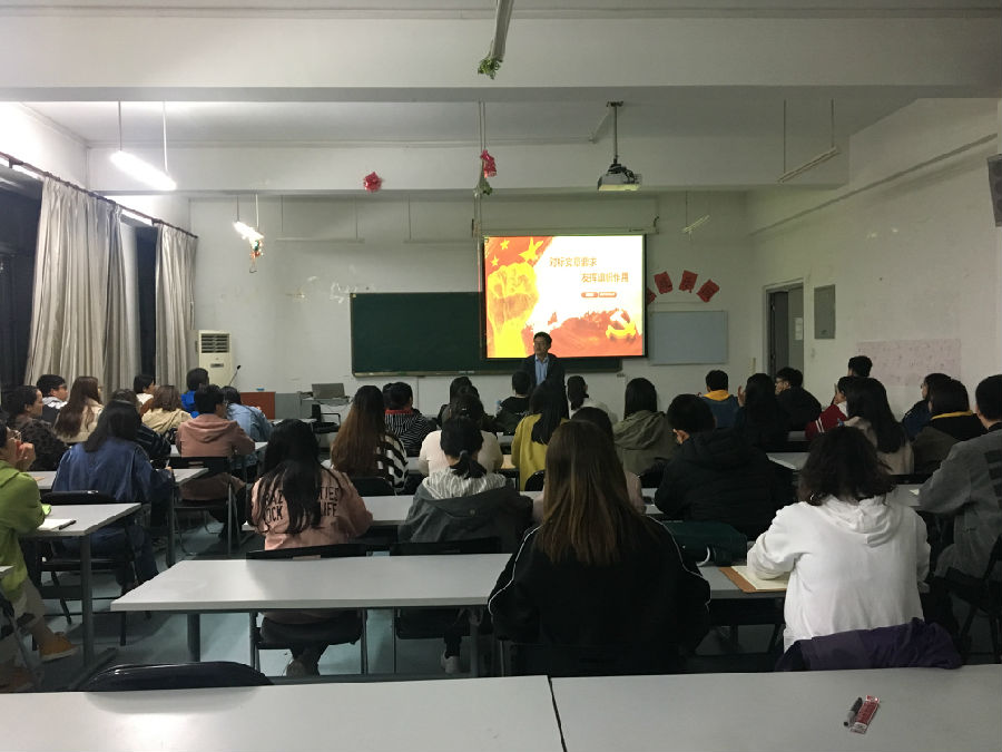 10月21日晚六点,色中色 党委副书记顾连忠为全体学生党员在理科群2号楼A308教室开展了题为“对标党章要求,发挥旗帜作用”的党课,全体学生党员、辅导员参加了此次党课。