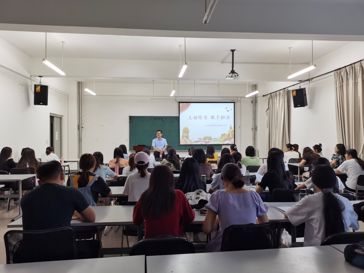 他要求毕业班党员要时刻不忘党员的身份,甘于奉献,主动作为,协助老师做好毕业季各项服务工作。