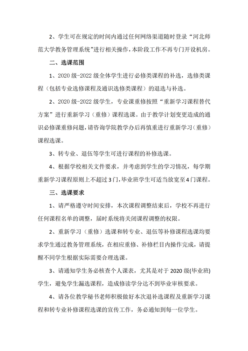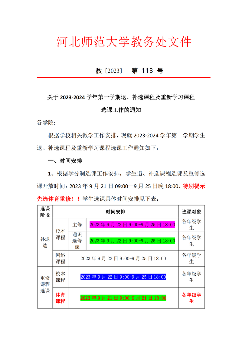 关于2023-2024学年第一学期退、补选课程及重新学习课程选课工作的通知