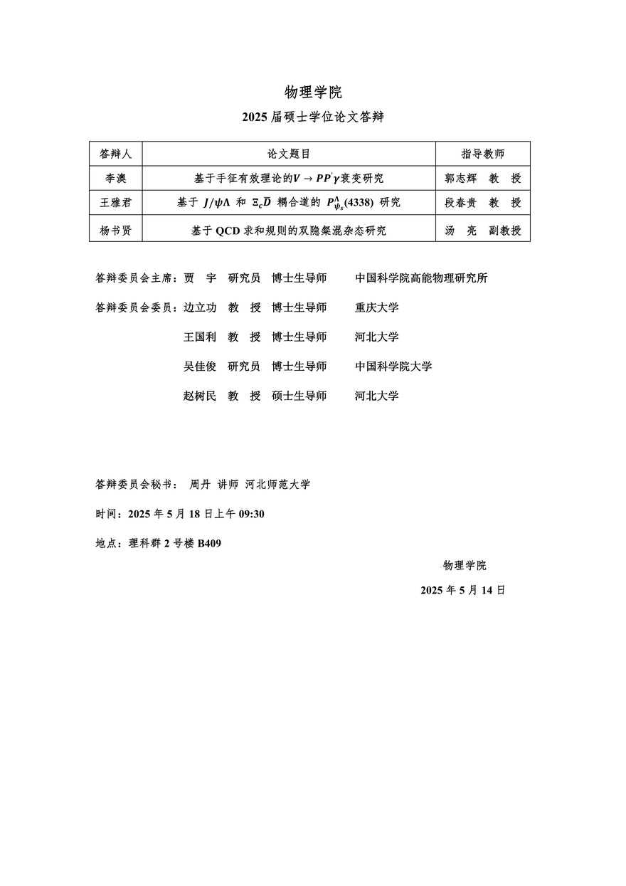 【2025研究生答辩】2025年凝聚态实验方向硕士研究生学位论文答辩安排