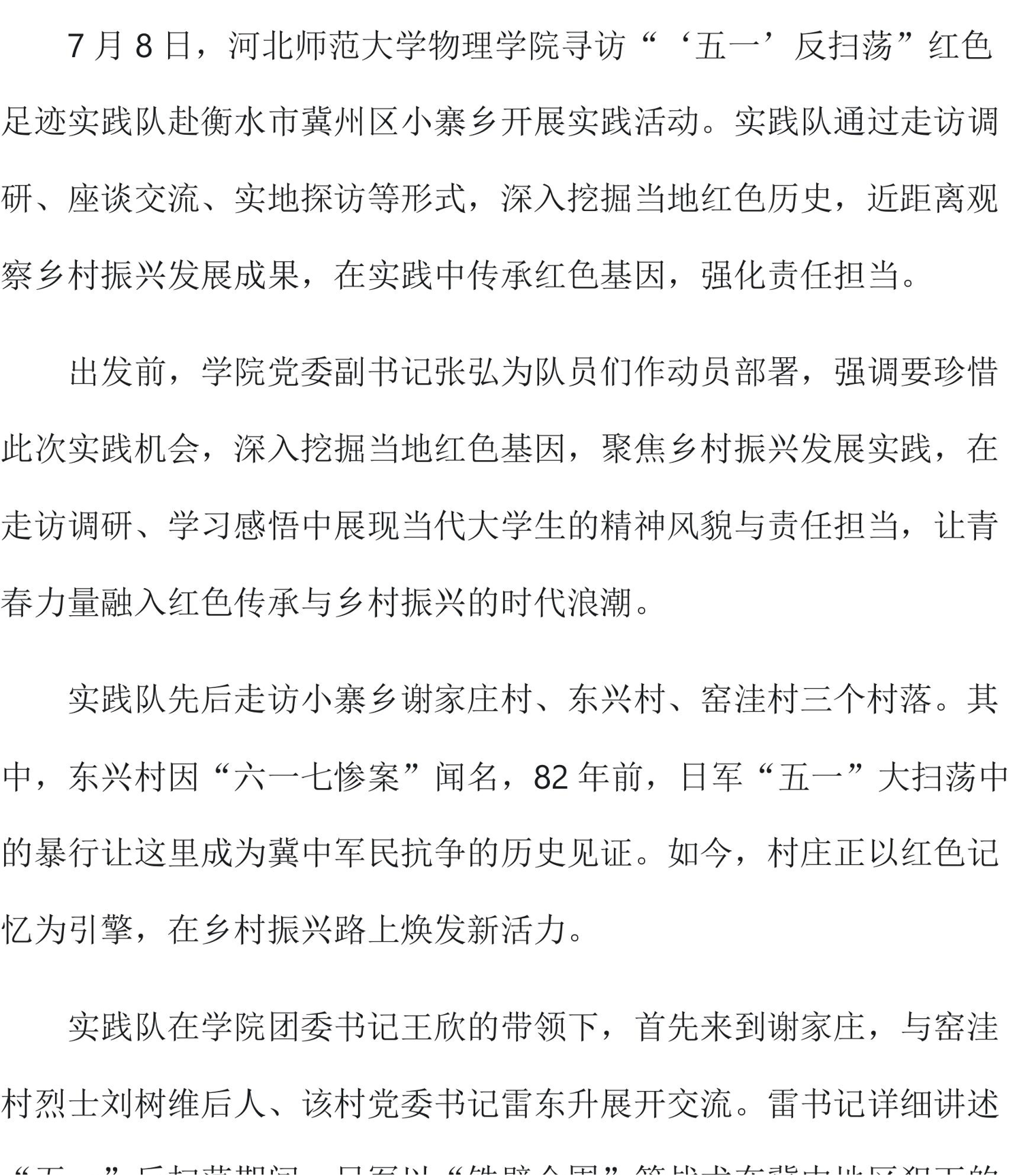 铭记历史 砥砺前行——河北师大色中色 实践队探访冀州区小寨乡红色足迹与振兴路