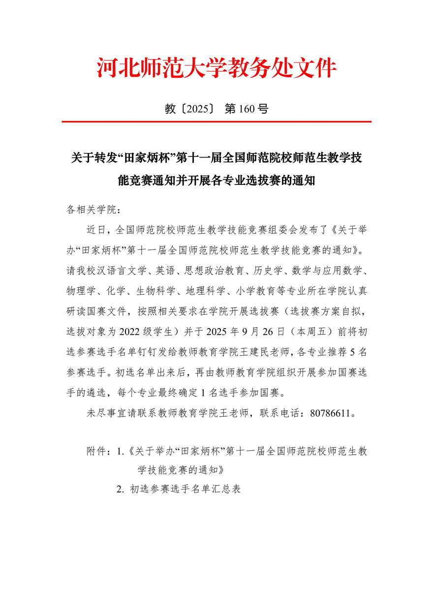 附件1 第十一届“田家炳杯”全国师范院校师范生教学技能竞赛的通知(盖章版).pdf