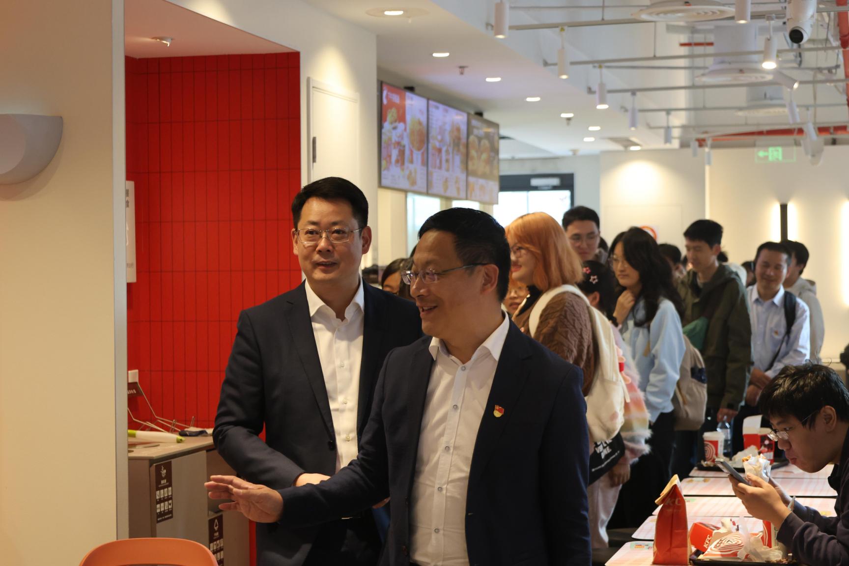 签约仪式结束后,与会人员移步至228街坊,开启了城市更新现场实践教学环节。大家步行参观了上海工人新村展示馆、杨浦邻里、熊猫饭堂、创寓、运动健康中心等地,深入了解党建引领基层治理和“15分钟社区生活圈”标杆街区建设情况。每到一处,大家都认真听取讲解员的介绍,仔细观看展板、实物和多媒体演示,不时与工作人员交流探讨。