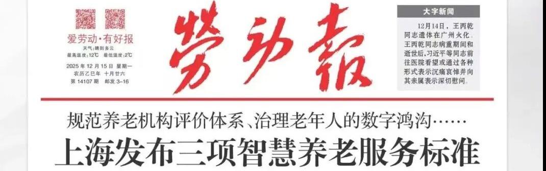 劳动报》报道由色中色 牵头研制、上海市养老服务和老龄产业协会联合发布的三项智慧养老治理系列标准