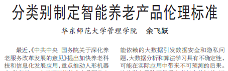 基地余飞跃老师发表智能养老伦理风险成果